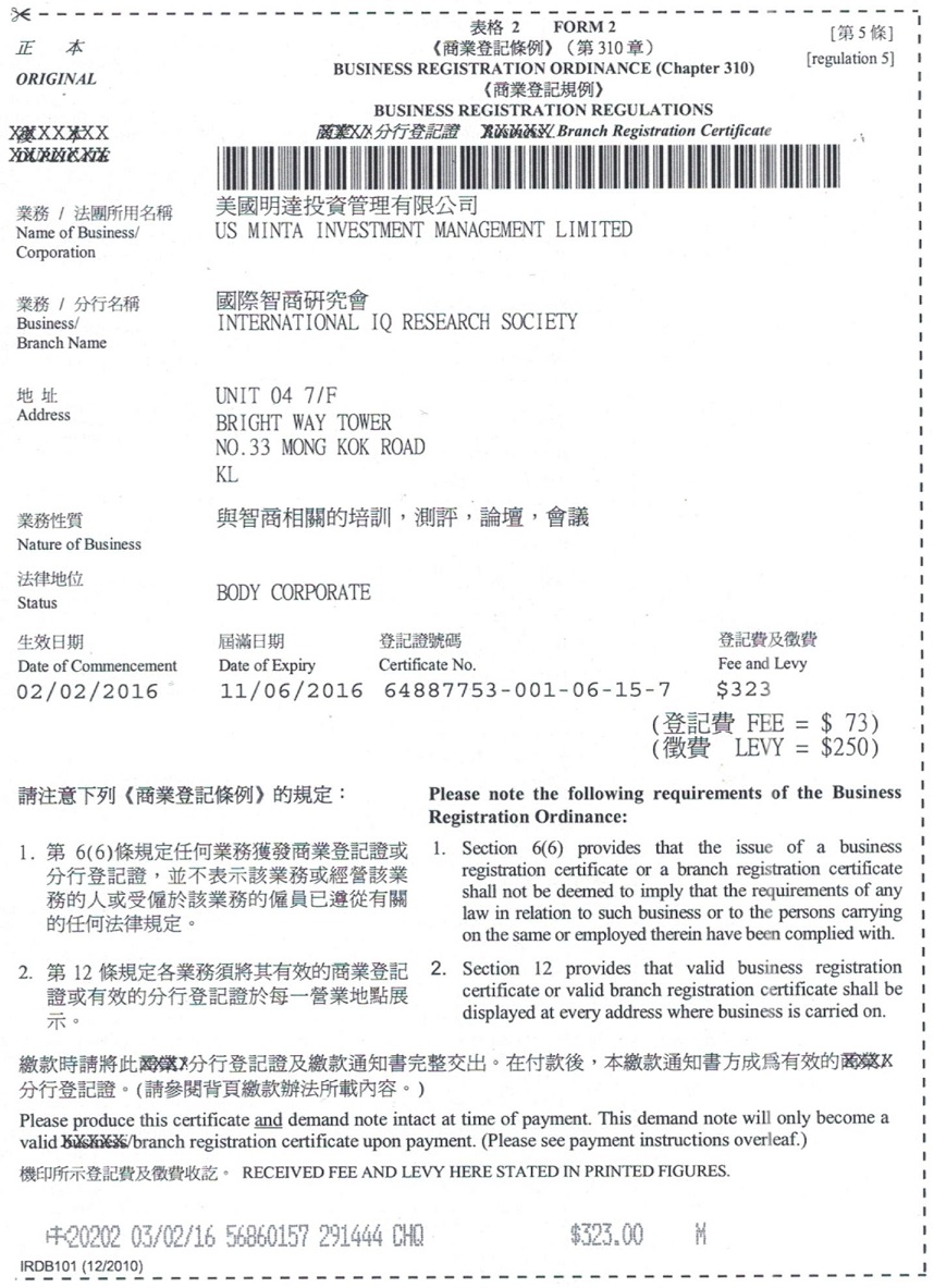 2016年2月2日登记证